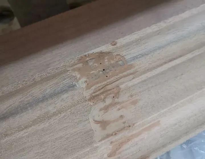 針對局部樹脂(油囊)的材料,可先用刀挖除油囊部位,再用同種材料(木紋方向應一致)進行填補;如果不允許挖除,可用有機溶劑清洗,松節油、漆油、甲苯、丙酮等清洗,去掉油脂后,預防二次滲出,需要先做封固,再按工序進行作業。