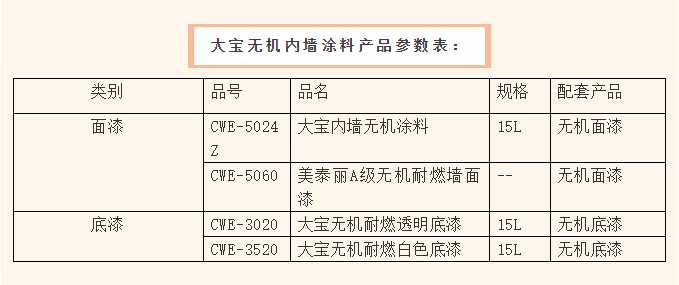 該系列涵蓋無機內墻涂料面漆和配套使用的無機耐燃底漆產品,經過國際權威檢測通過,具高溫下不燃燒、不會產生煙等顯著特性,在火災等險情時刻可延長逃生時間。同時,兼具0級防霉、防水透氣、經久耐用等功能優勢,備受需求市場關注。