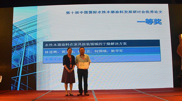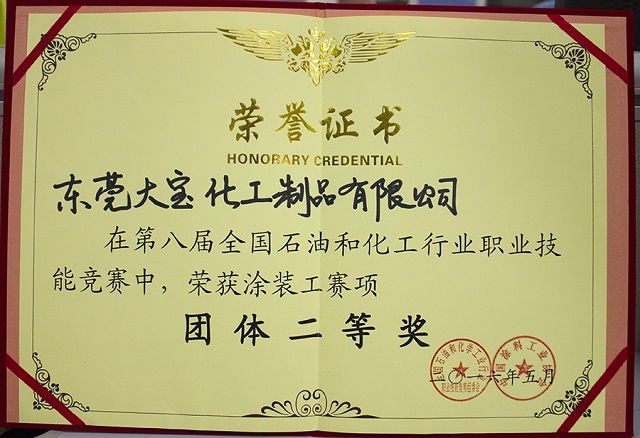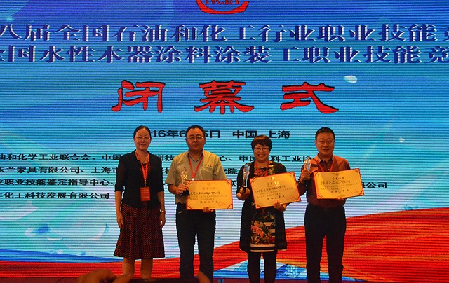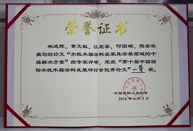 會(huì)議上表彰了一批十年來(lái)在推動(dòng)中國(guó)水性木器涂料產(chǎn)業(yè)化進(jìn)程中做出特殊貢獻(xiàn)的企業(yè)和個(gè)人,大寶漆除了獲得“中國(guó)水性木器涂料發(fā)展特別貢獻(xiàn)獎(jiǎng)”外,由大寶化工技術(shù)部林進(jìn)輝等人撰寫的《水性木器涂料在家具涂裝領(lǐng)域的干燥解決方案》和《自交聯(lián)丙烯酸酯乳液在水性木器封閉底漆中的應(yīng)用研究》還分別榮獲本次論文評(píng)選一等獎(jiǎng)和優(yōu)秀獎(jiǎng),大寶漆還奪得了“全國(guó)水性涂裝職業(yè)技能大賽團(tuán)體二等獎(jiǎng)”,而大寶化工工程師周光偉先生憑借多年水性涂裝經(jīng)驗(yàn)和精湛的技術(shù)榮獲“全國(guó)石油和化工行業(yè)技術(shù)能手”的榮譽(yù)稱號(hào)。