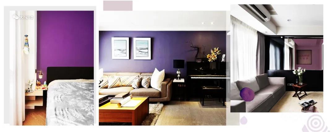 灰、白空間搭配黑加侖紫色布藝、地毯、墻面等,營造出浪漫高雅的視覺效果。用于客廳或臥室等處,為家居空間注入氣質,提升家居的整體魅力。