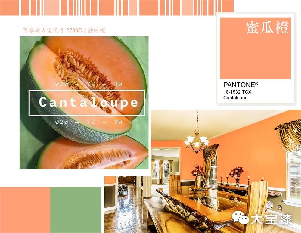 蜜瓜橙是WGSN公布的2020春夏五大關(guān)鍵色之一,蜜瓜橙帶著幾分粉色調(diào),比激光橙要柔和許多,同時又帶著滿滿的活力,更受年輕群體青睞。